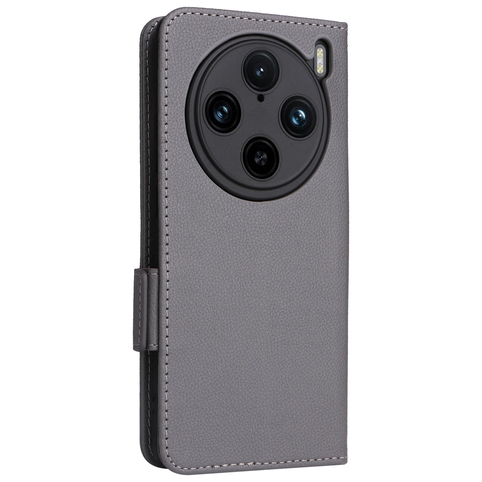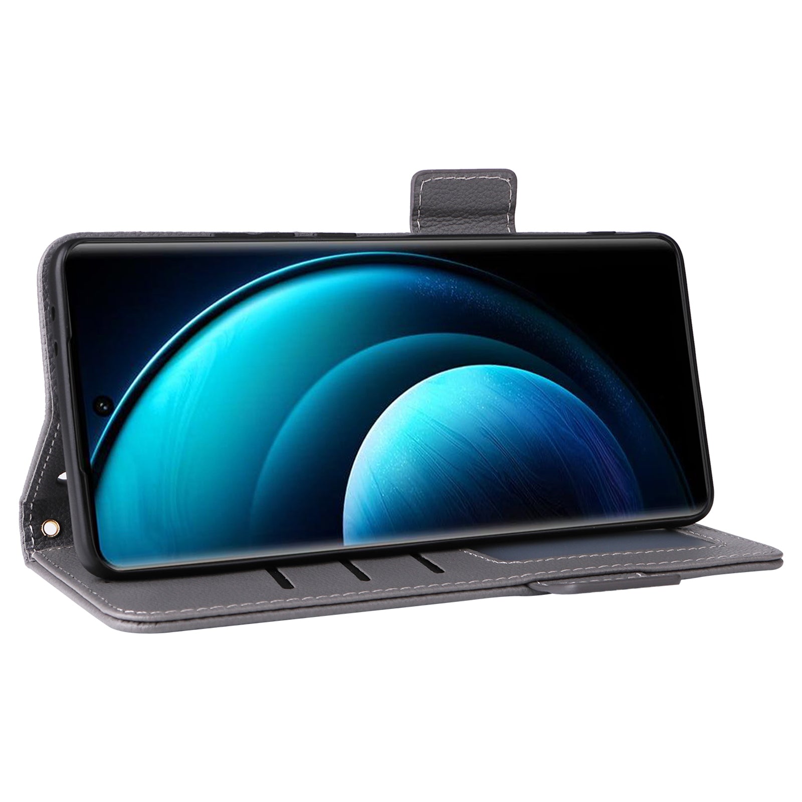For vivo X100 Pro 5G Case Card Slots Shockproof Phone Cover with Litchi Texture - Grey