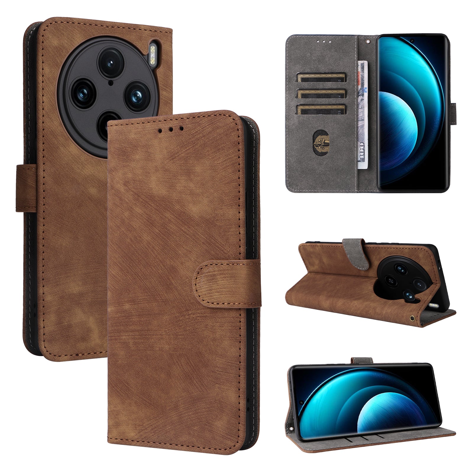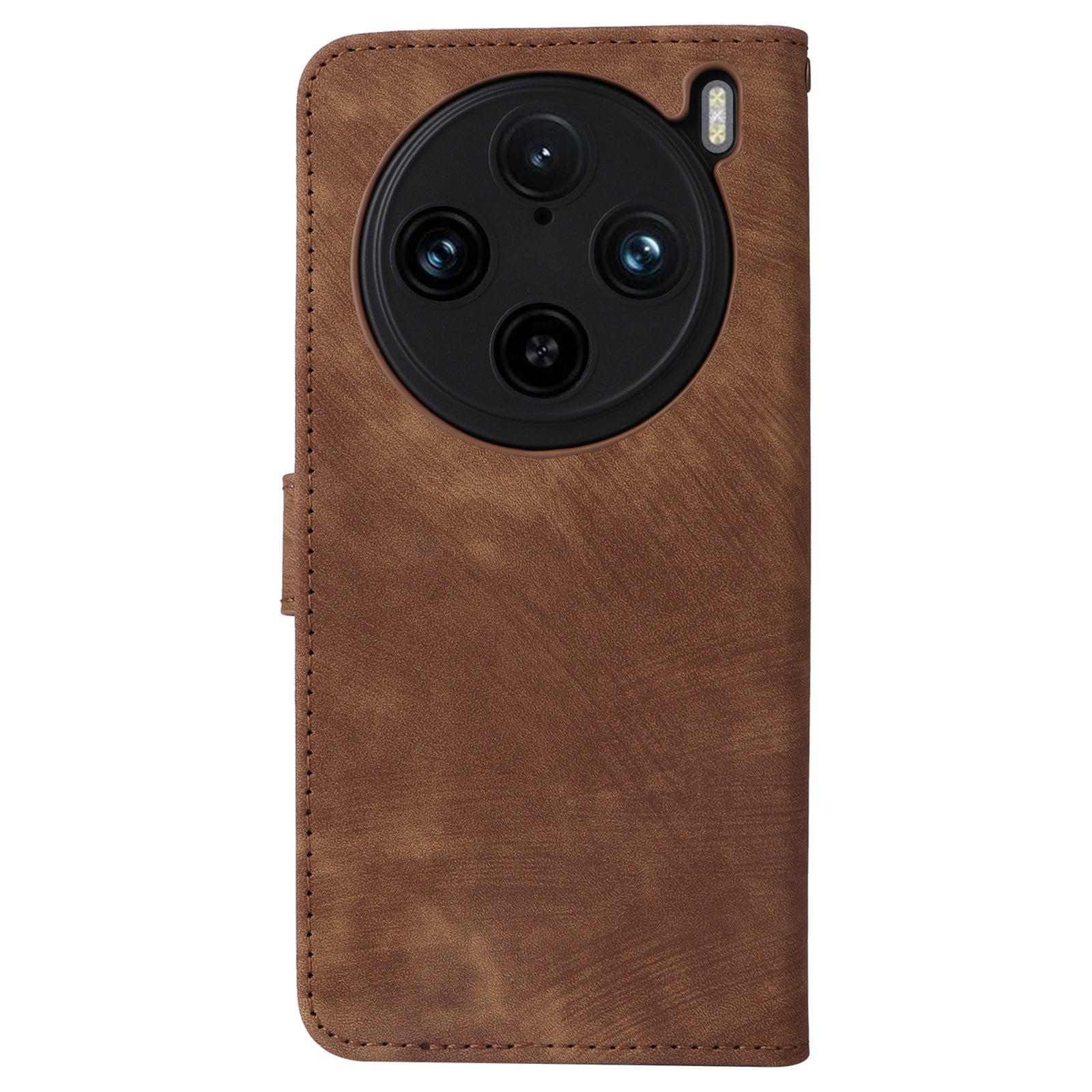 For vivo X100 Pro 5G Case Leather Flip Stand Phone Cover with RFID Blocking Function - Brown