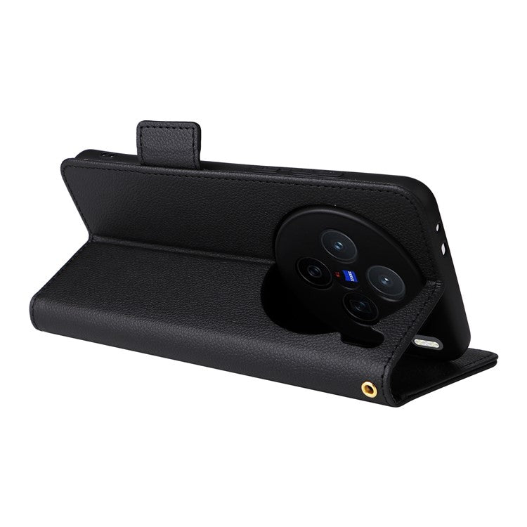 For vivo X200 5G Case Litchi Texture PU Leather Wallet Flip Phone Cover - Black