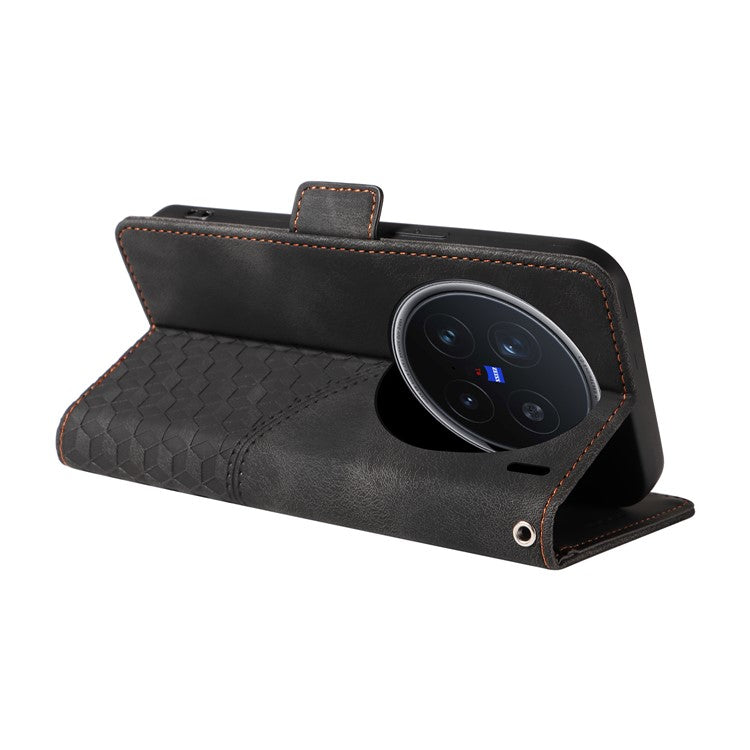 For vivo X200 Pro 5G Case PU Leather Phone Cover Rhombus Starry Imprinted - Black