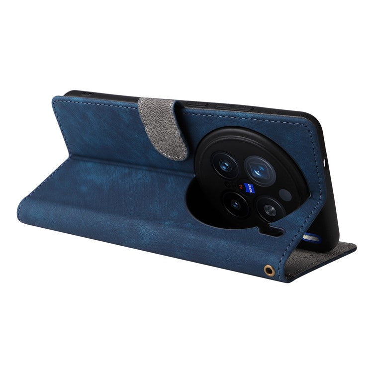 For vivo X200 Pro 5G Wallet Phone Case RFID Blocking PU Leather Flip Cover Stand View - Blue