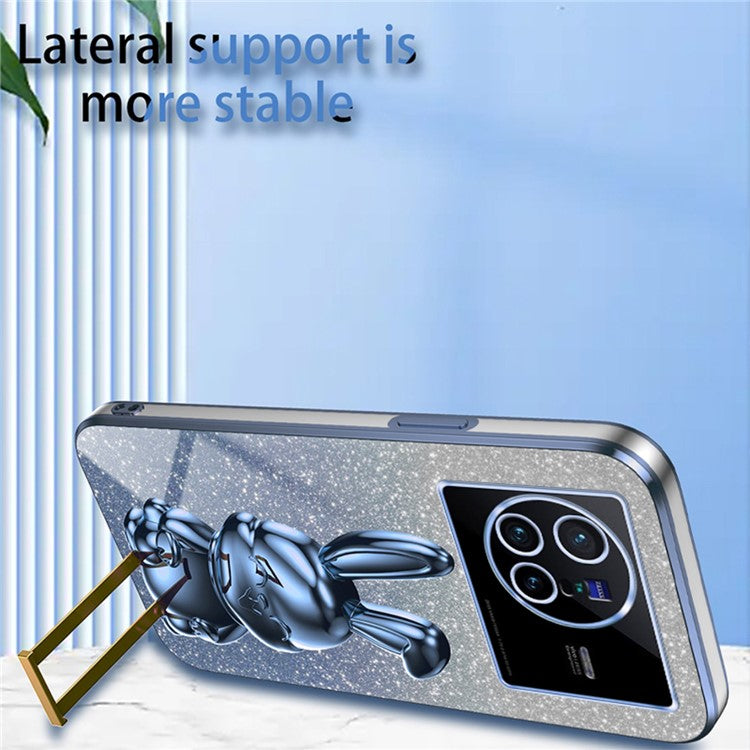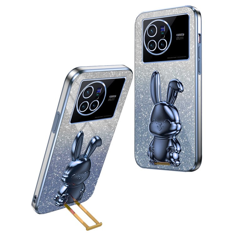 For vivo X80 5G Case Glitter Powder PC+TPU Phone Cover with Pull-out Kickstand - Blue