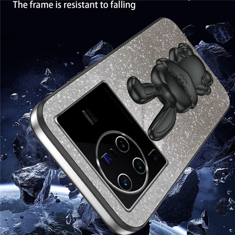 For vivo X80 Pro 5G Cartoon Rabbit Kickstand Cover PC+TPU Cell Phone Cases - Black