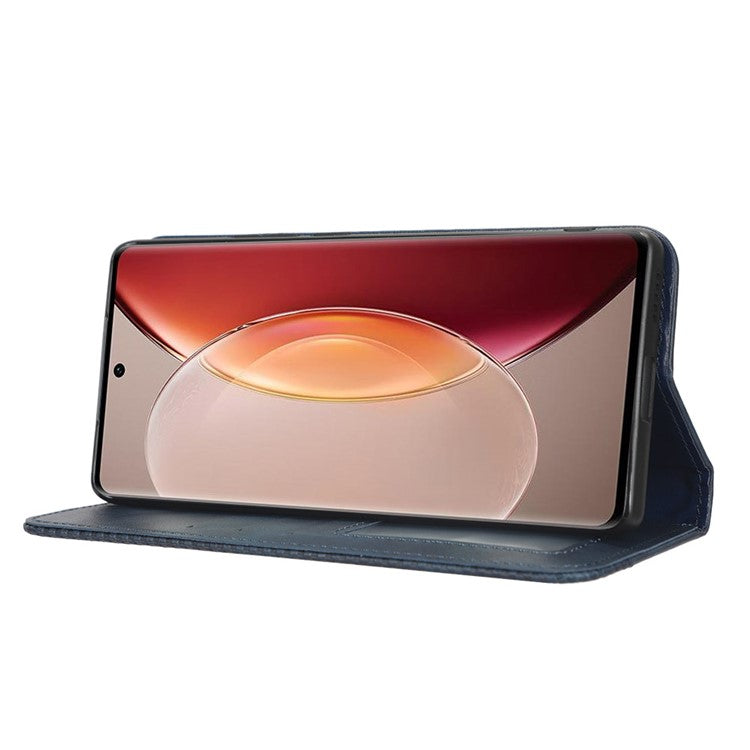 For vivo X90 5G Drop-proof PU Leather Stand Wallet Phone Cover Retro Texture Phone Case - Blue