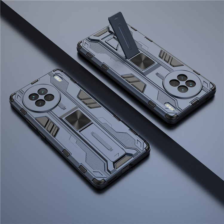 For vivo X90 5G Hard PC Soft TPU Dual Layer Anti-Drop Phone Case Camera Protection Kickstand Cover - Blue