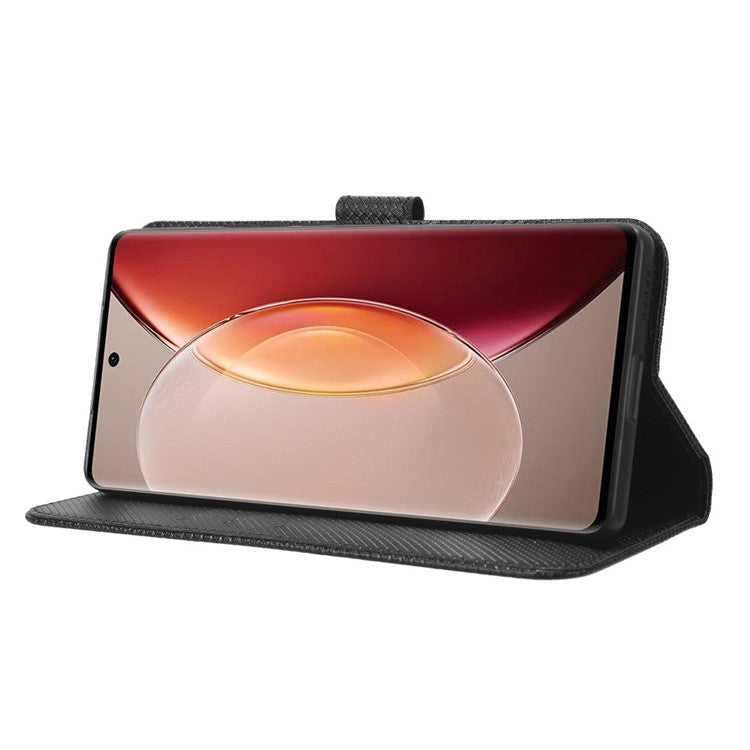 For vivo X90 5G Shockproof Wallet Stand Phone Case Diamond Texture Leather Mobile Phone Cover Shell - Black