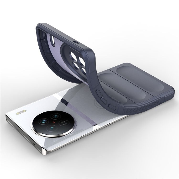For vivo X90 5G Soft TPU Rugged Back Cover Drop-proof Protective Cell Phone Case - Dark Blue