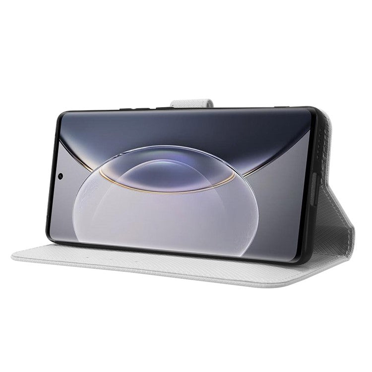 For vivo X90 Pro+ 5G PU Leather Phone Case Diamond Texture Wallet Stand Cell Phone Cover - White