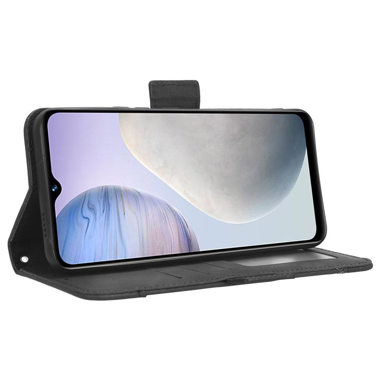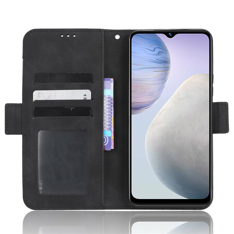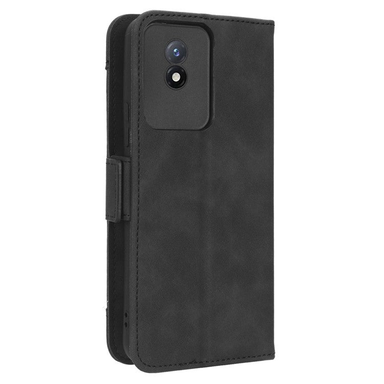 For vivo Y02 4G Anti-scratch Phone Cover PU Leather Multiple Card Slots Stand Wallet Phone Case - Black