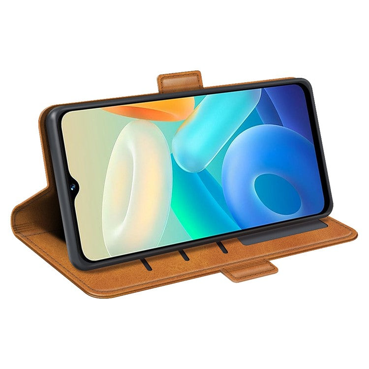 For vivo Y02s 4G Stand Design Textured PU Leather Anti-fall Phone Case Wallet Folio Flip Magnetic Shell - Yellow