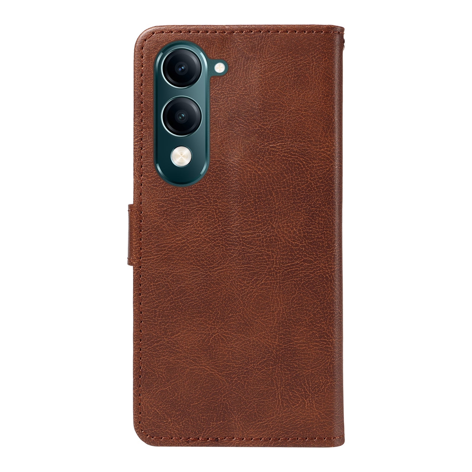 For vivo Y04 4G / vivo Y29s 5G Leather Wallet Case with Strap Solid Color Phone Stand Cover - Brown