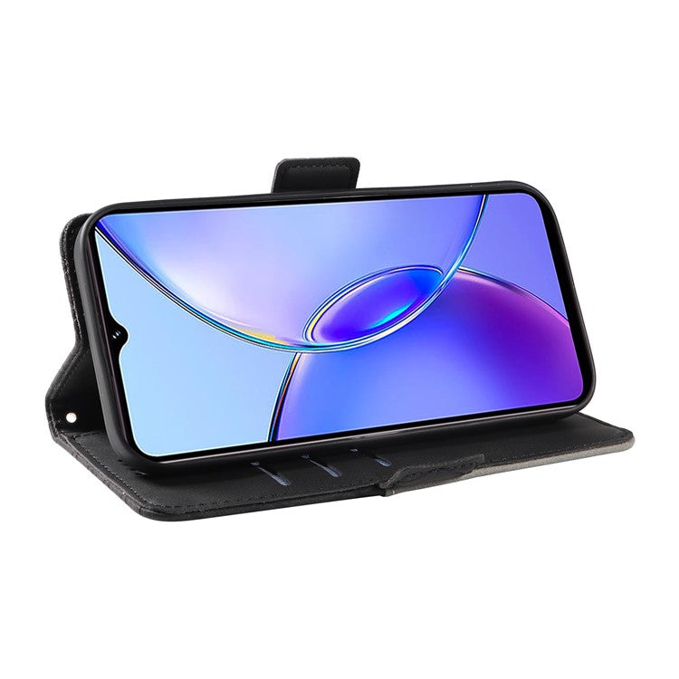 For vivo Y17s 4G Leather Case Rhombus Imprinted Card Slots Phone Cover - Black