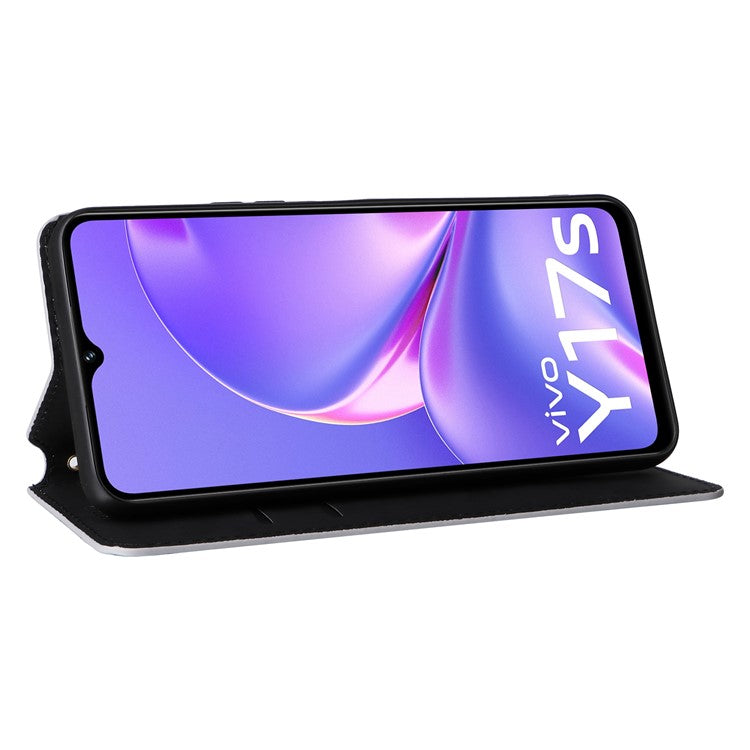 For vivo Y17s 4G / Y33t (2023) V2317A Case Drop Resistant PU Leather Stand Cover - Silver