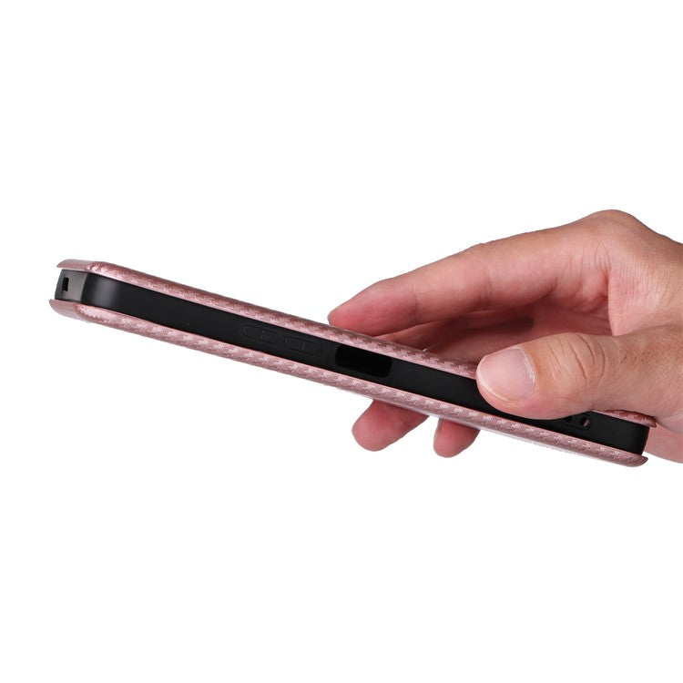 For vivo Y19s 4G Case Carbon Fiber Texture Drop-Proof PU Leather Phone Cover - Rose Gold