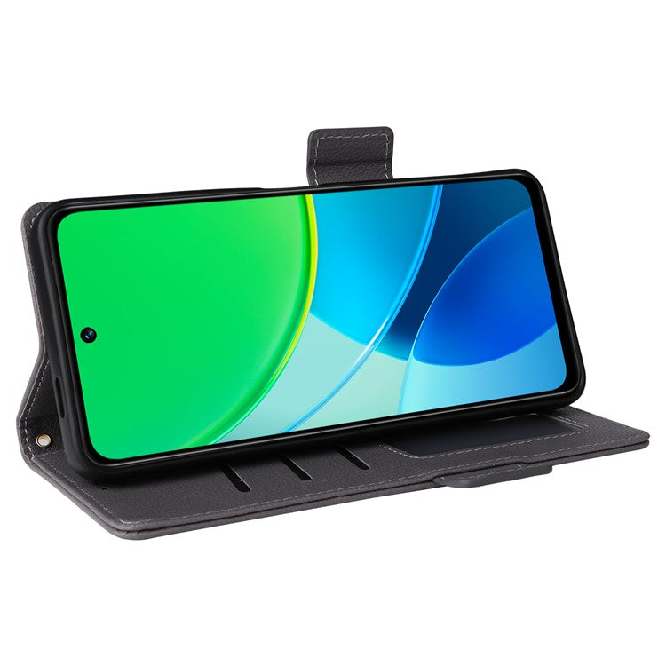 For vivo Y19s 4G Case Litchi Texture PU Leather Wallet Flip Phone Cover - Grey