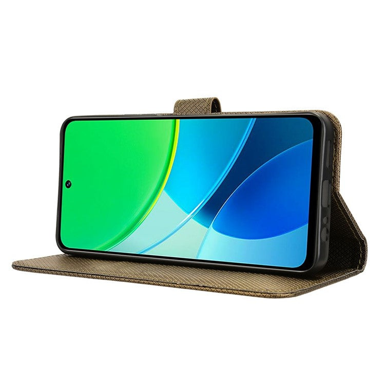 For vivo Y19s 4G Case PU Leather Diamond Texture Wallet Phone Cover - Brown