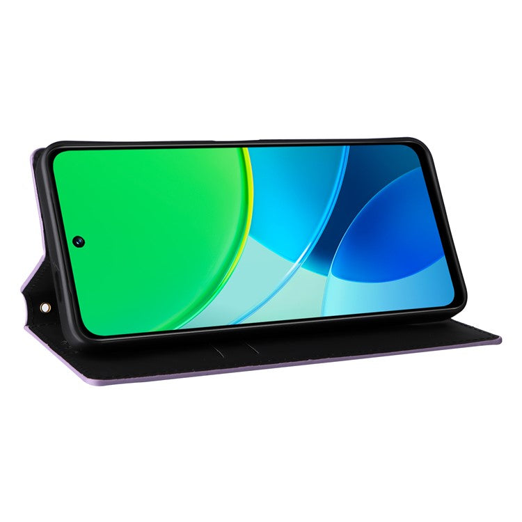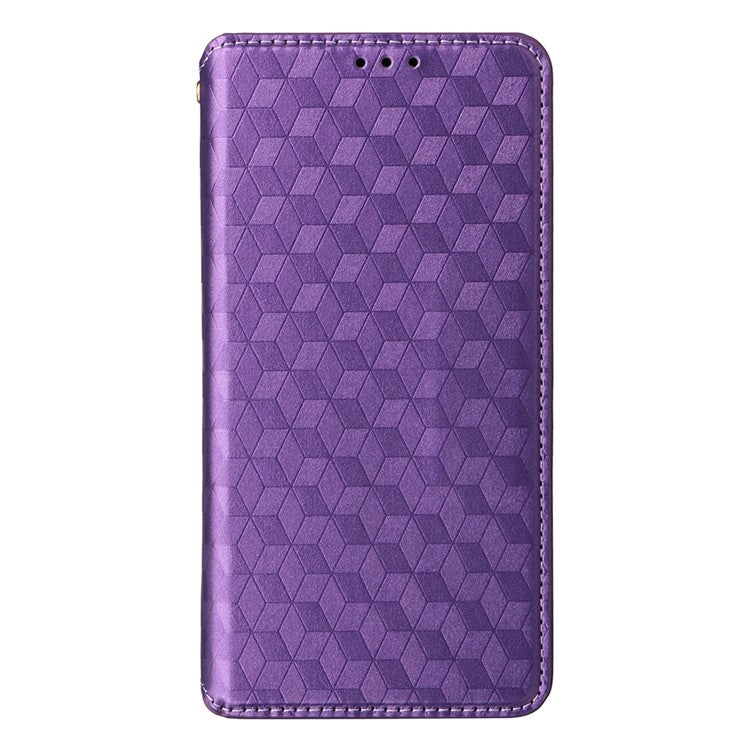 For vivo Y19s 4G Wallet Case Rhombus Imprinted Leather Phone Cover - Purple