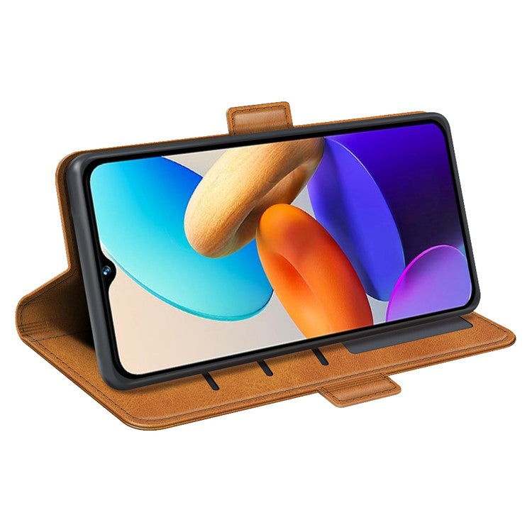 For vivo Y22s 4G Calf Texture PU Leather Wallet Stand Case Anti-scratch Dual Magnetic Clasp Phone Cover - Yellow