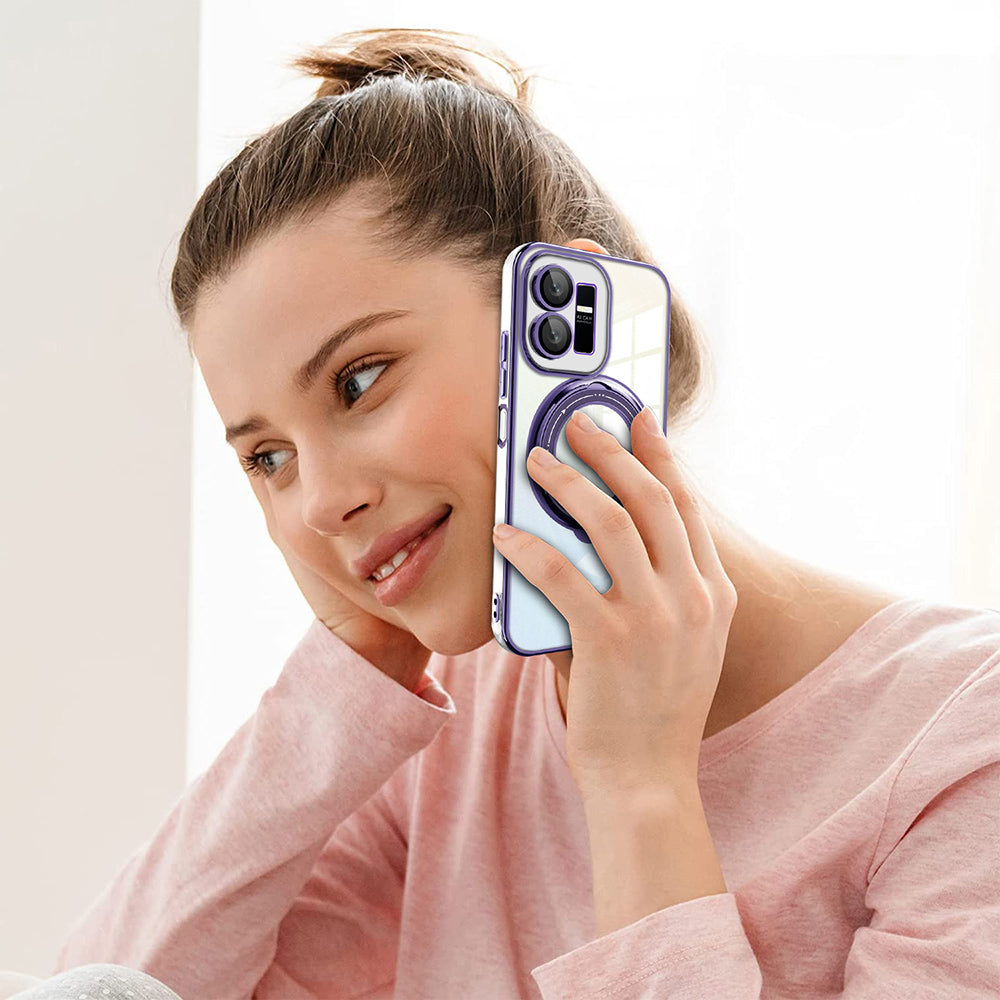 Uniqkart for vivo Y22s 4G / Y35 4G (2022) Ring Kickstand Phone Case Drop Proof PC+TPU Cover Compatible with MagSafe - Black