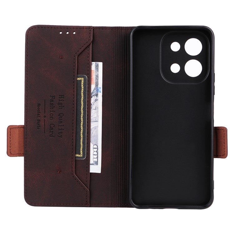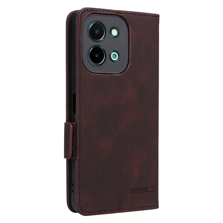 For vivo Y28 4G Case Leather Wallet Phone Cover Hardware Decor - Coffee