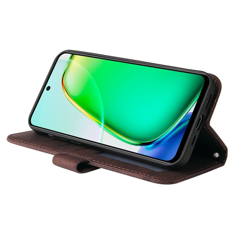 For vivo Y28 4G / iQOO Z9x 5G Case Leather Wallet Phone Cover Skin Touch Feeling - Brown