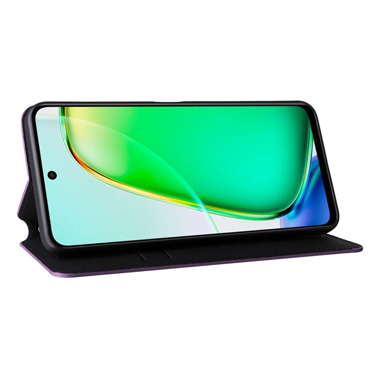 For vivo Y28 4G Magnetic Absorption Case Rhombus Leather Phone Cover - Purple