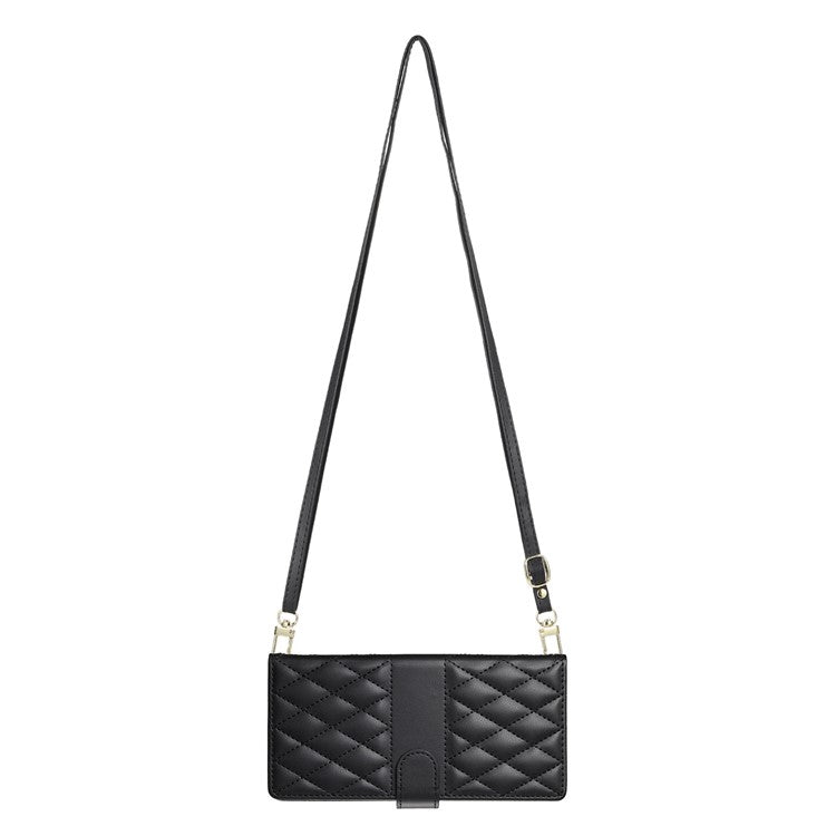 For vivo Y29 4G Case Rhombus Stitching Wallet Stand Leather Phone Cover with Long / Short Strap - Black