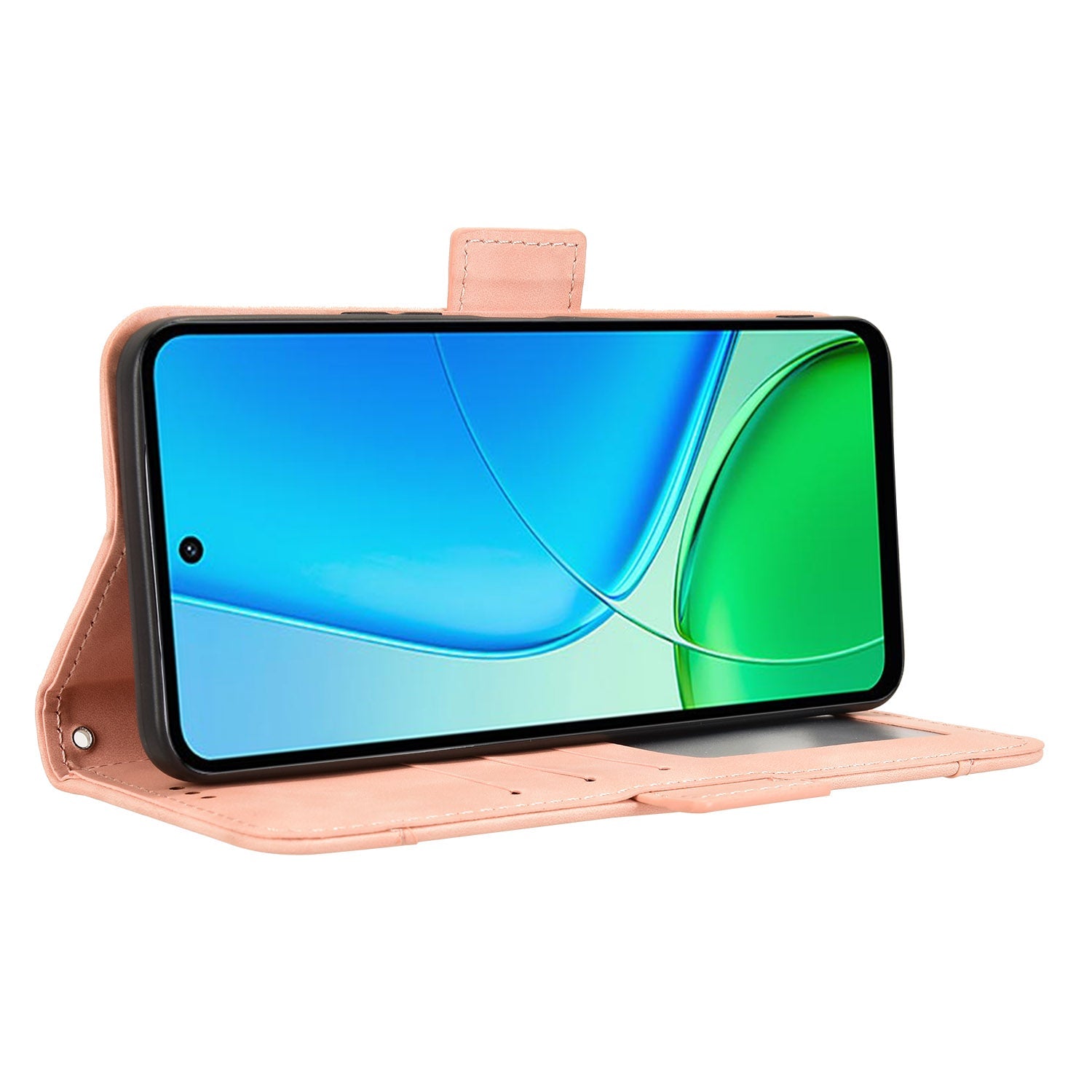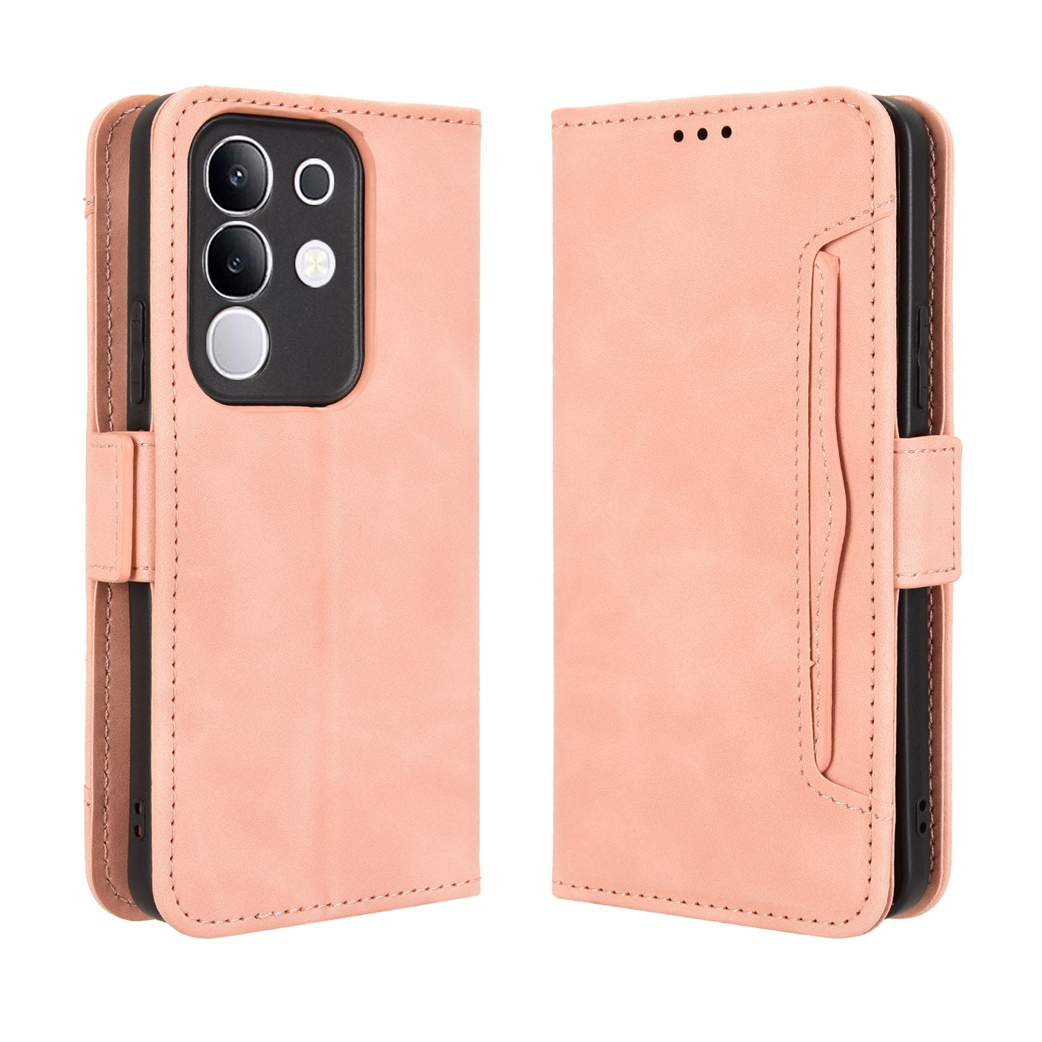 For vivo Y29 4G Leather Case Phone Wallet Cover with Multiple Card Slots - Pink