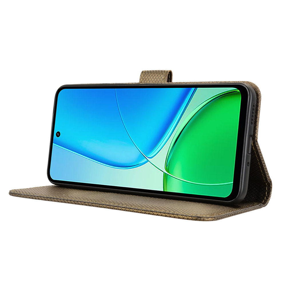 For vivo Y29 4G Leather Wallet Case with Strap Diamond Texture Phone Cover - Brown