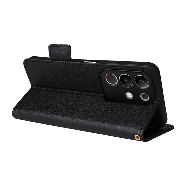 For vivo Y29 4G / T4x 5G Case Wallet Flip Litchi Texture PU Leather Phone Cover - Black