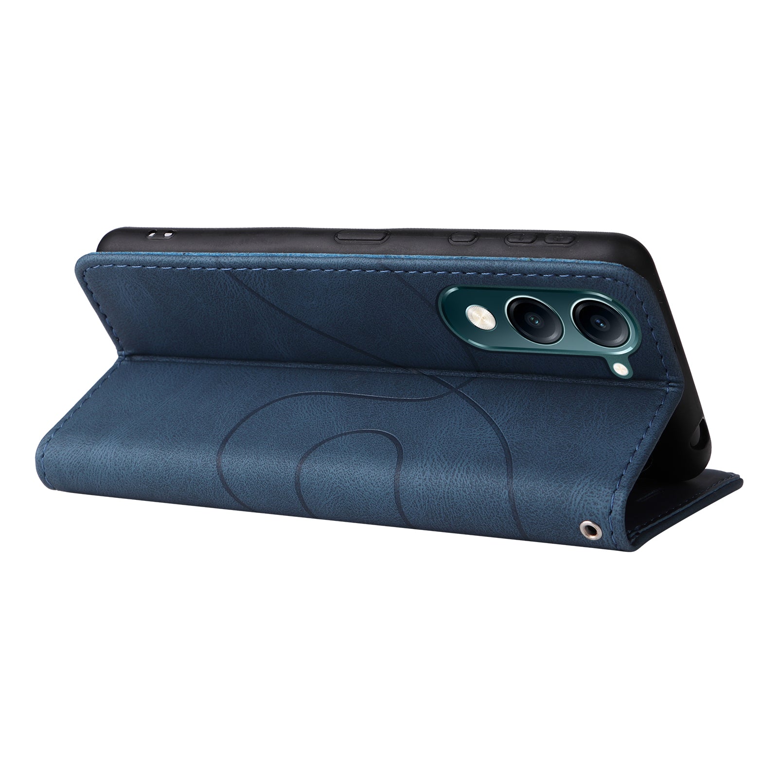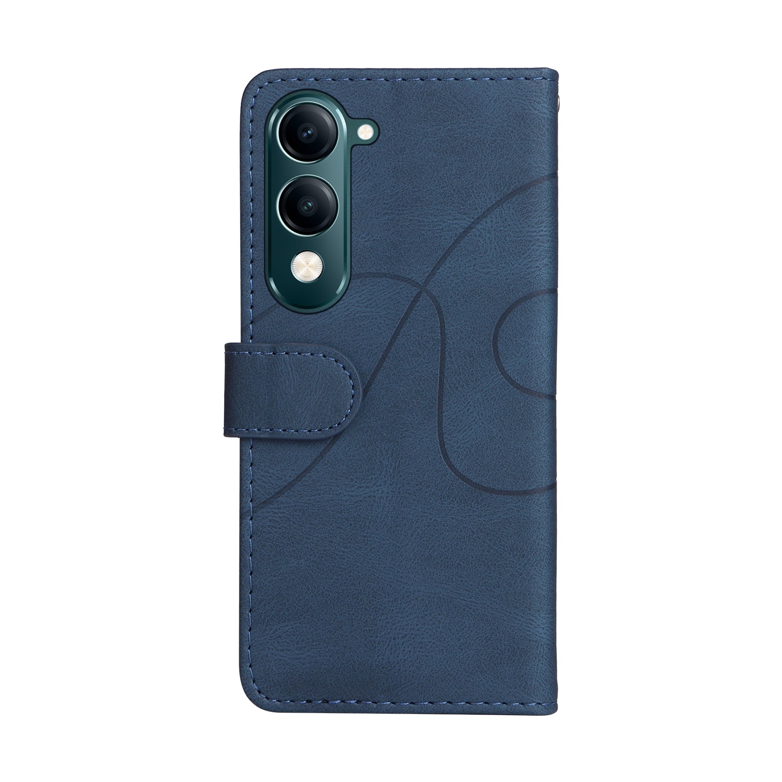 For vivo Y29s 5G Leather Phone Case Stand Wallet with Bi-colour Splicing Design - Blue