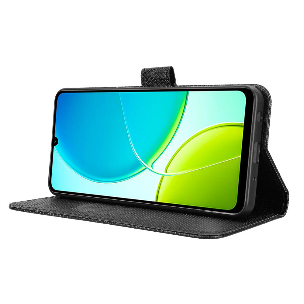 For vivo Y29s 5G / vivo Y04 4G Leather Wallet Case with Strap Diamond Texture Phone Cover - Black