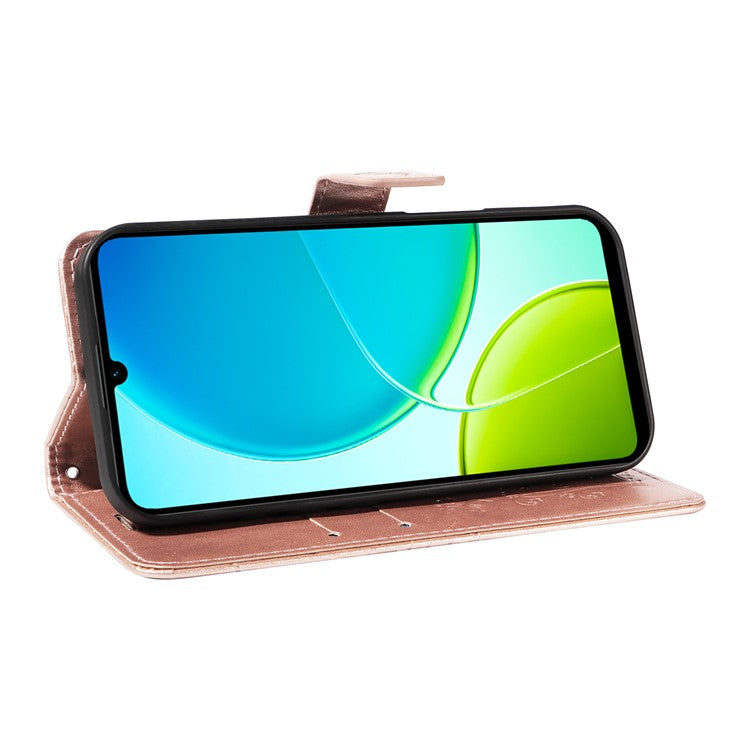 For vivo Y29s 5G Wallet Case Floral Butterfly Imprinted Leather Phone Cover Stand - Rose Gold