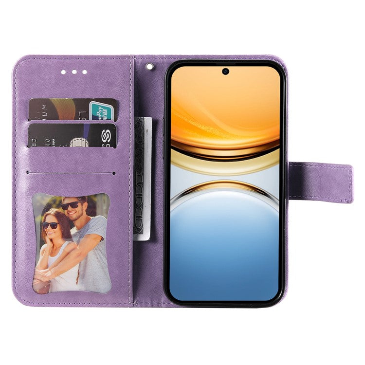For vivo Y300 Pro 5G Case PU Leather Wallet Floral Phone Cover Stand View - Purple