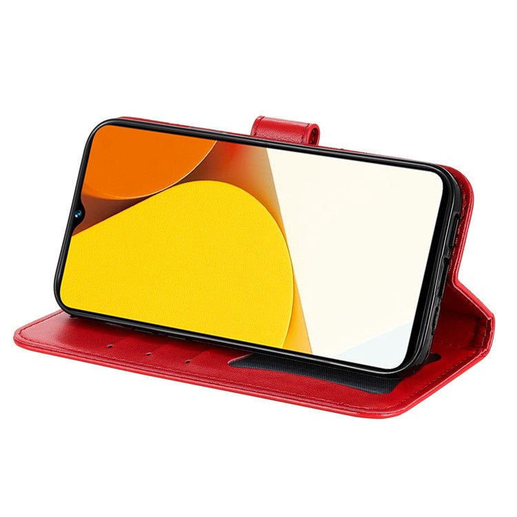 For vivo Y35 4G (2022) / Y22s 4G / Y22 4G PU Leather Flower Imprinting Stand Phone Case Magnetic Clasp Wallet Cover with Strap - Red