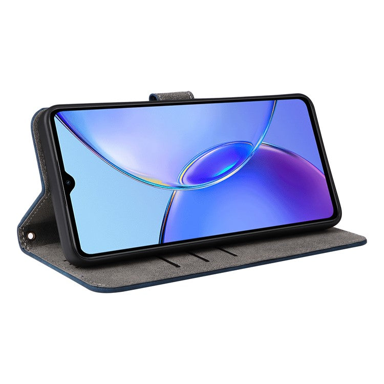 For vivo Y35+ 5G / Y35m+ 5G / Y27 4G RFID Blocking Phone Case Anti-scratch Leather Wallet Stand Cover with Strap - Blue
