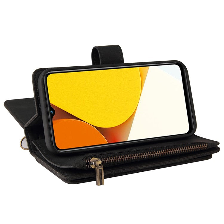For vivo Y35 / Y22 4G / Y22s 4G KT Multi-Functional Series-2 Full Body Protection Phone Shell, Multiple Card Slots Skin-touch Feeling Stand Wallet Flip Leather Case with Zipper Pocket - Black
