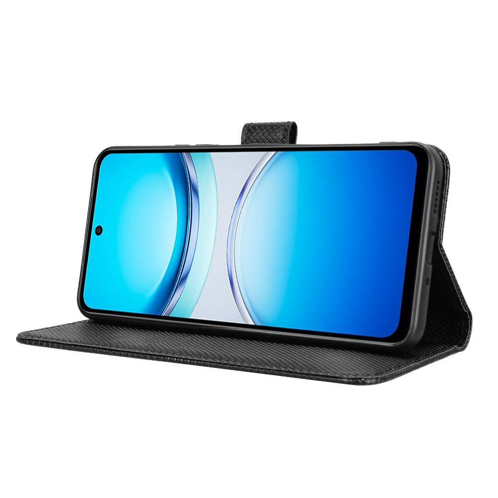 For vivo Y39 5G Leather Wallet Case with Strap Diamond Texture Phone Cover - Black