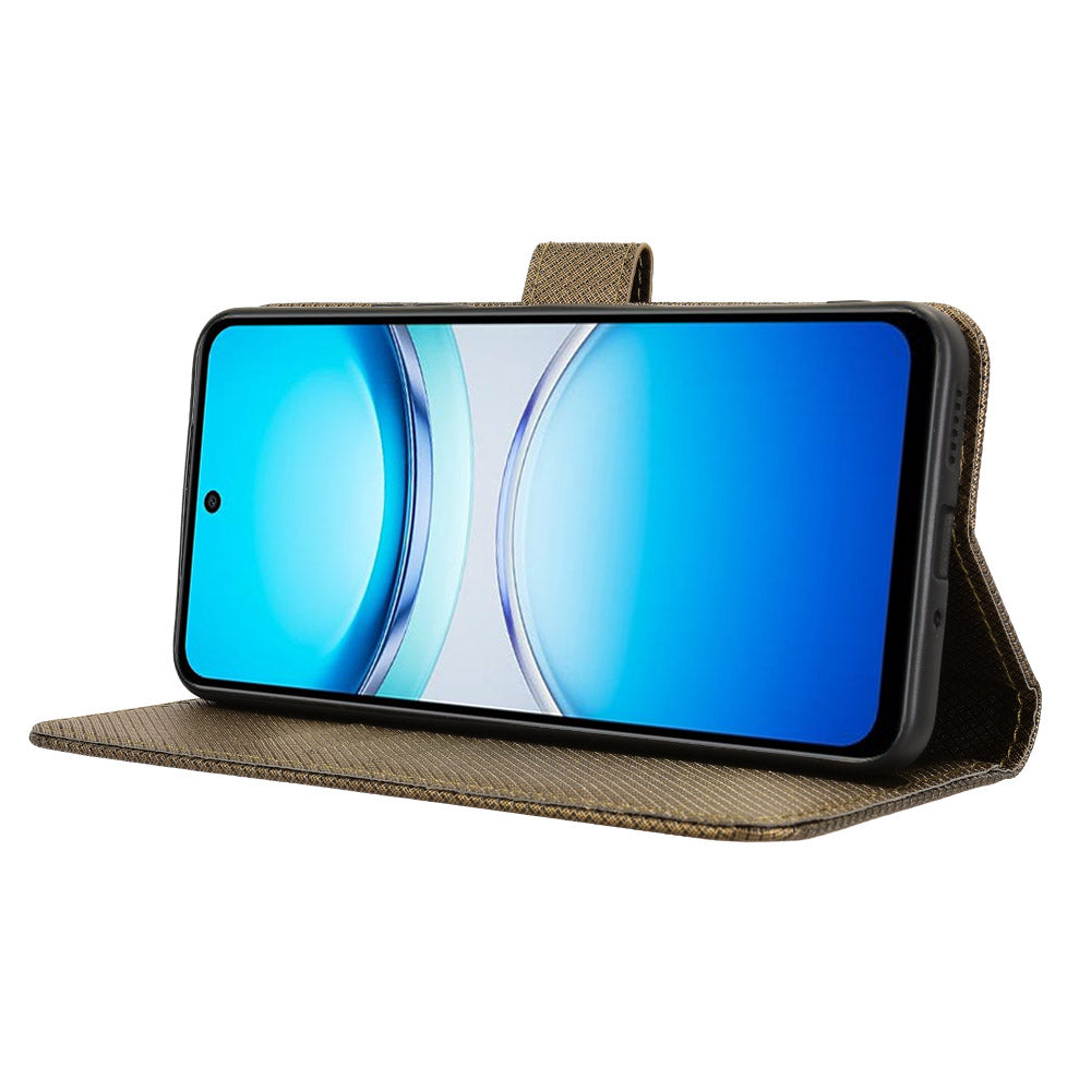 For vivo Y39 5G Leather Wallet Case with Strap Diamond Texture Phone Cover - Brown