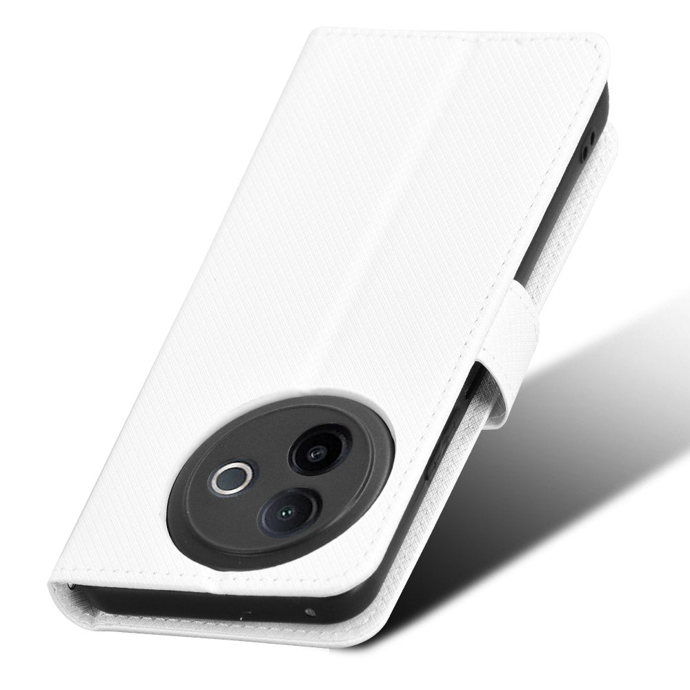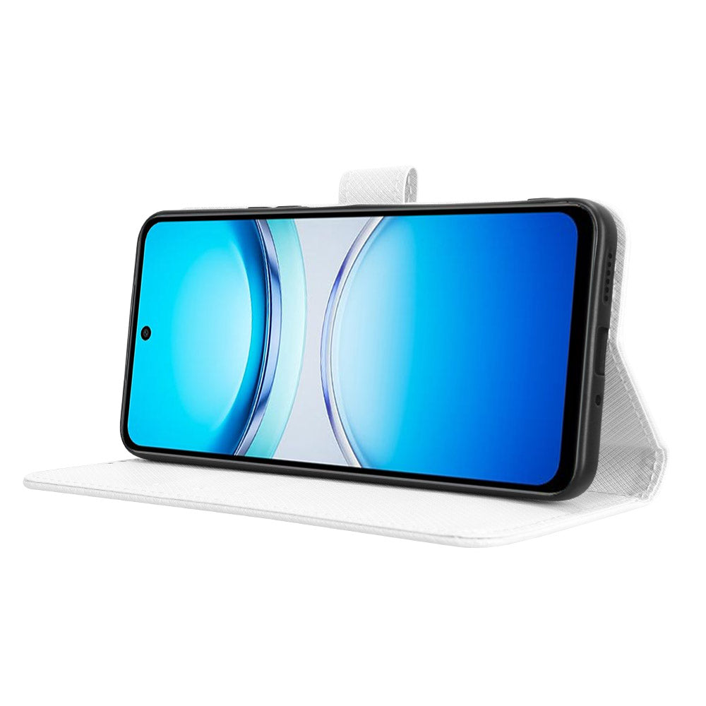 For vivo Y39 5G Leather Wallet Case with Strap Diamond Texture Phone Cover - White