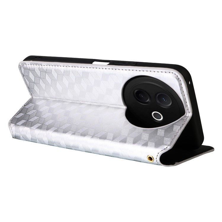For vivo Y39 5G / Y300i 5G Case Wallet Rhombus Imprinted Leather Phone Cover - Silver