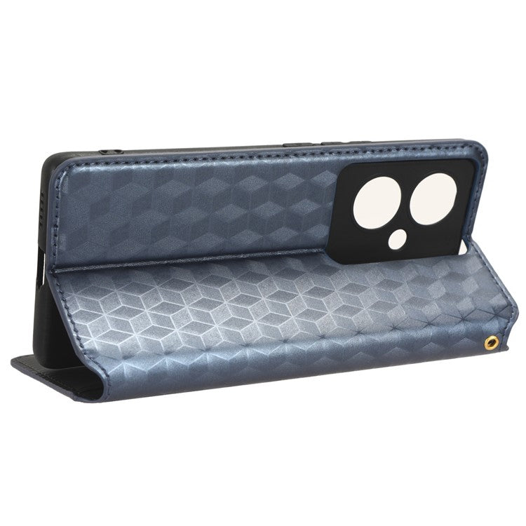 For vivo Y78 5G / Y78+ 5G / V29 Lite 5G Rhombus Imprinted Shell PU Leather Stand Shockproof Case Phone Cover - Blue