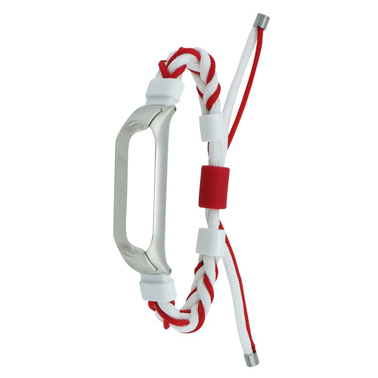 For Xiaomi Mi Band 3 / 4 Nylon Braided Rope Strap Silicone Bead Wrist Band Integrated with Watch Case - White + Red