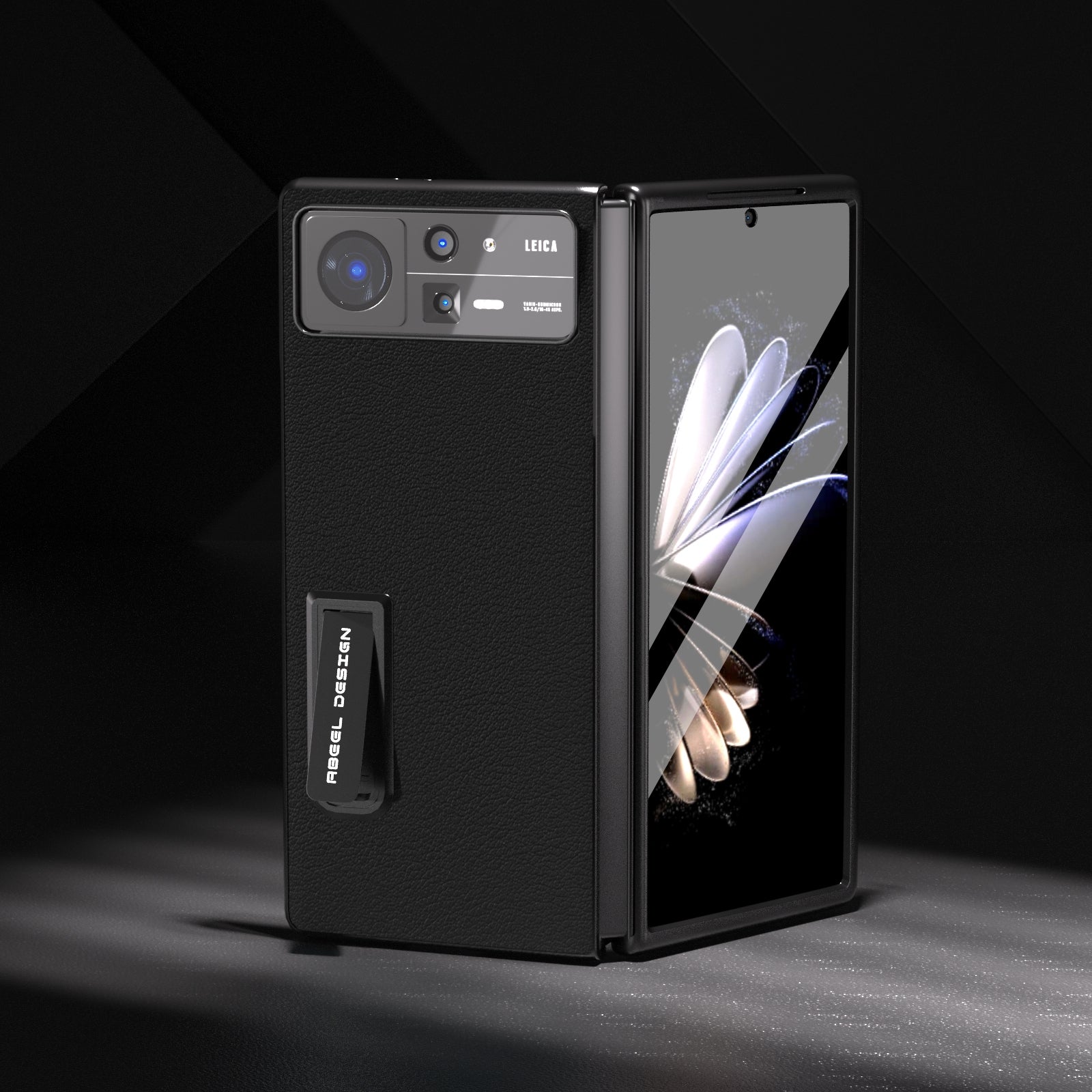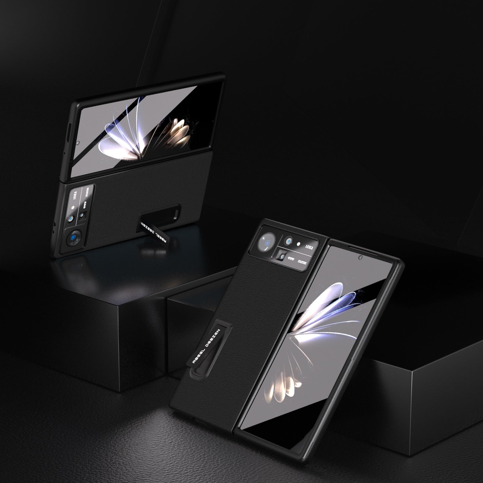 For Xiaomi Mix Fold 2 ABEEL Integrated Genuine Leather Wave Phone Case with Holder(Black)