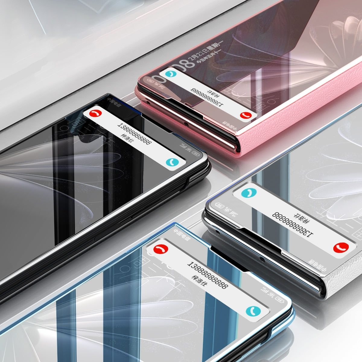 For Xiaomi Mix Fold 2 Electroplated Mirror Leather Phone Case with Holder(Black)