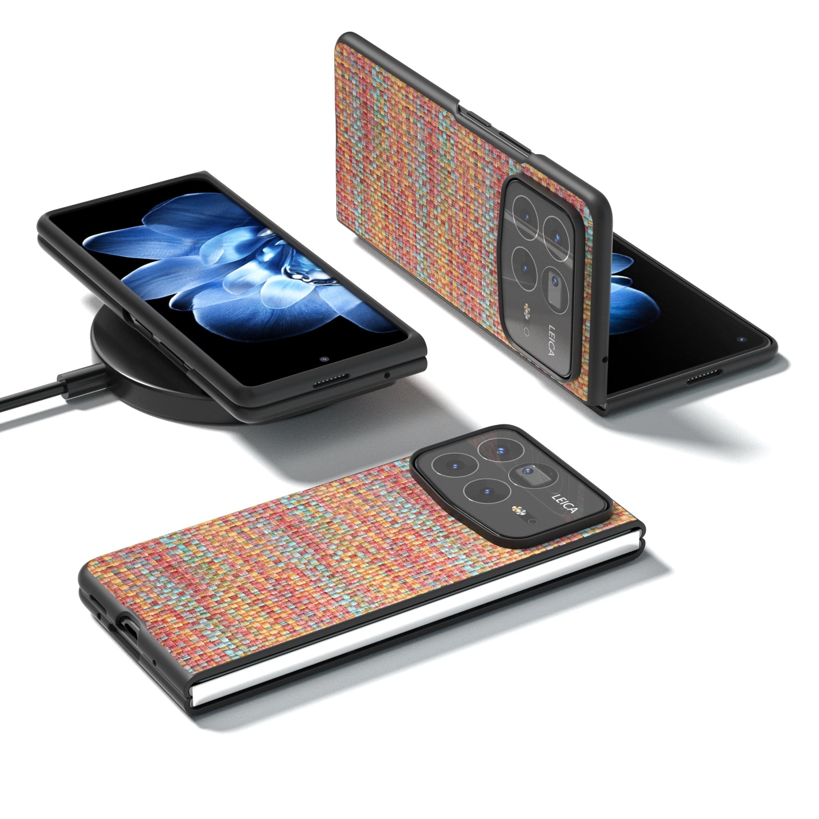 For Xiaomi Mix Fold 4 Black Frame Color Lattice Texture PU Phone Case(Tangerine)