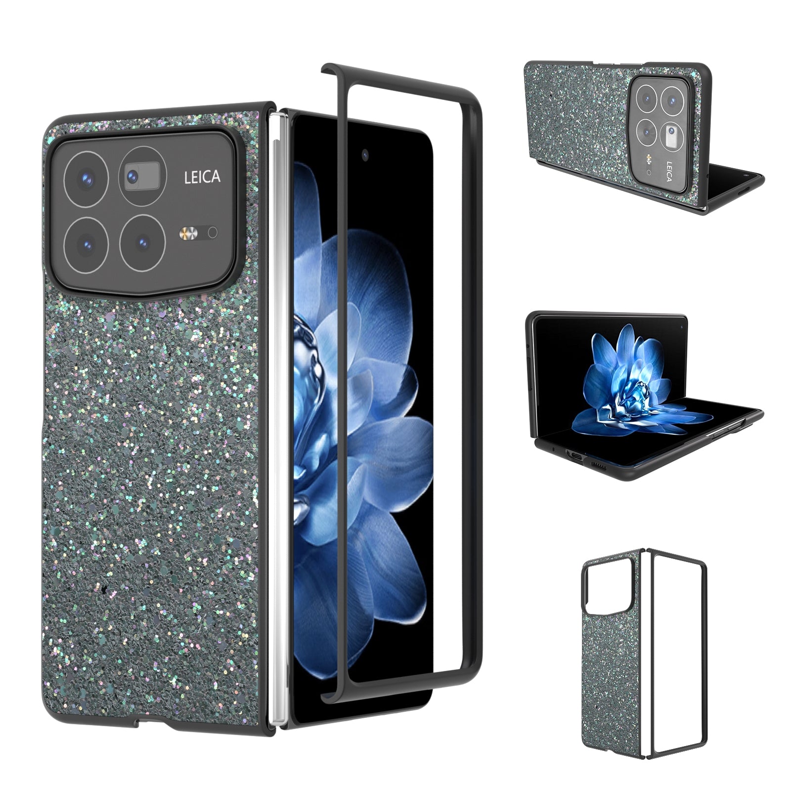 For Xiaomi Mix Fold 4 Black Frame Colorful Glitter Phone Case(Black Green)