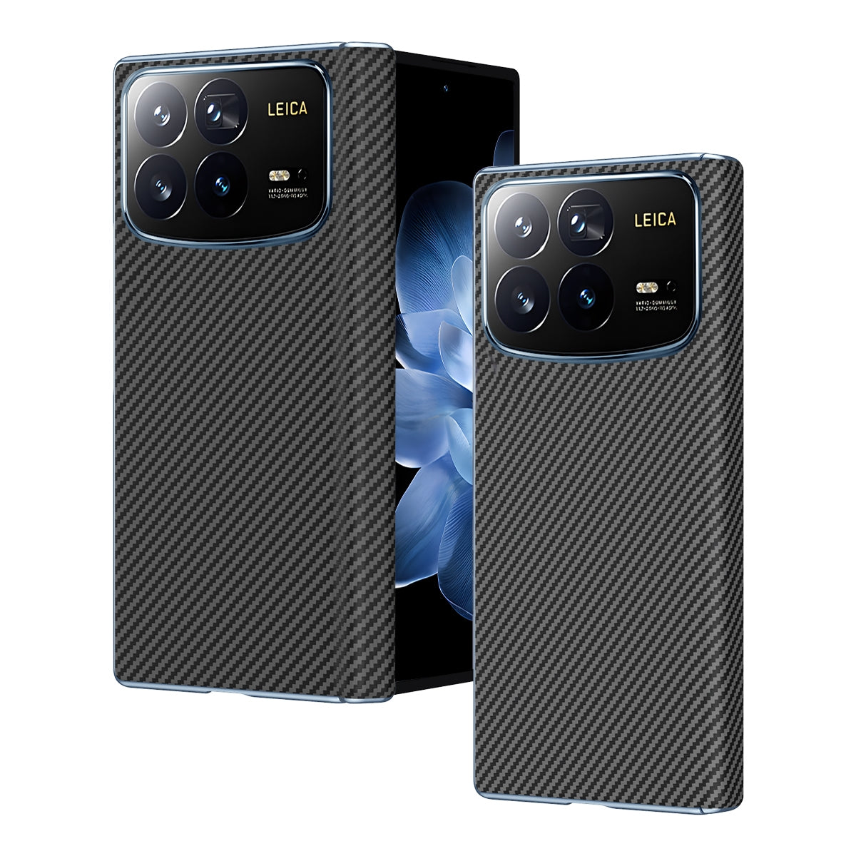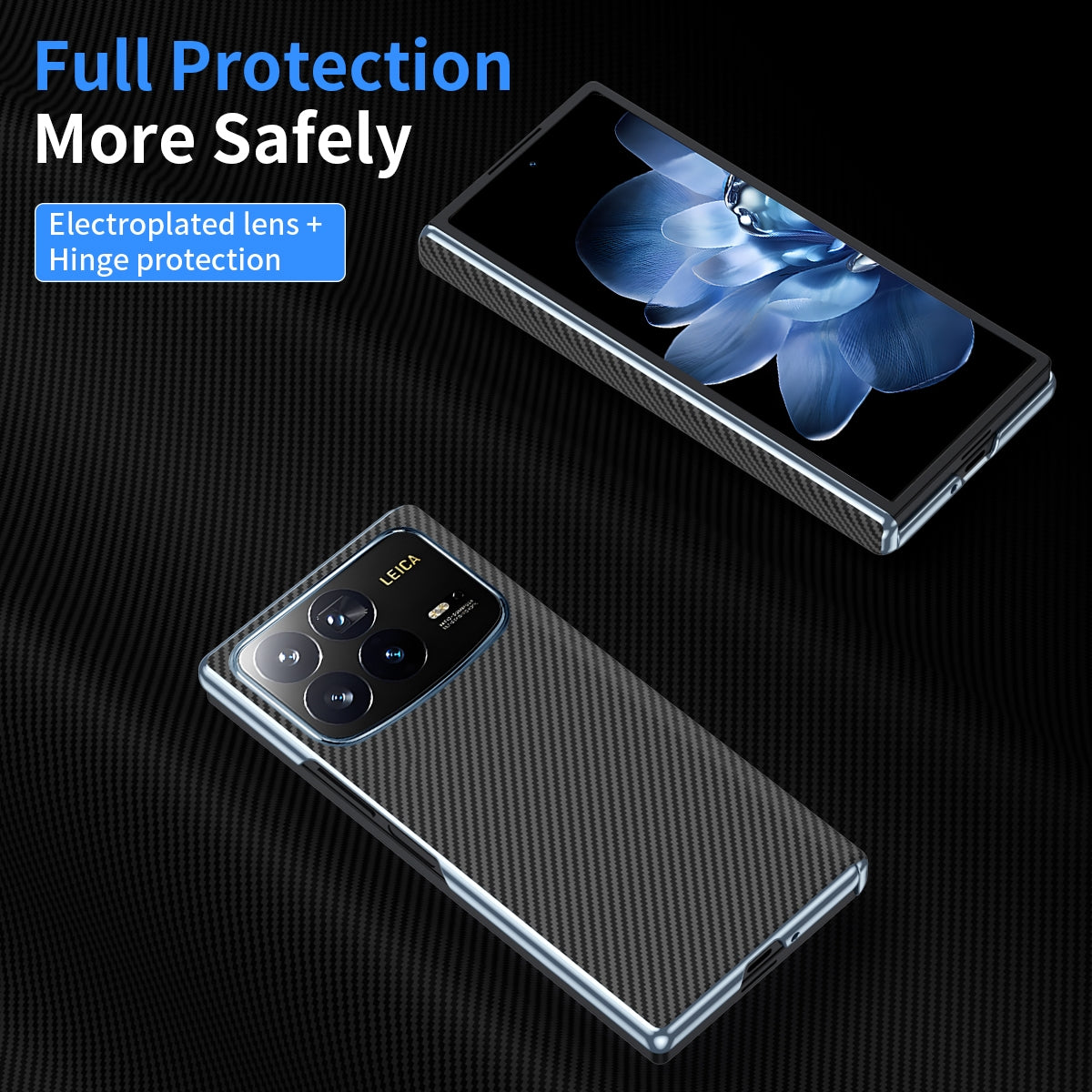 For Xiaomi MIX Fold 4 Electroplated Carbon Fiber Pattern Folding Phone Case with Hinge(Black)