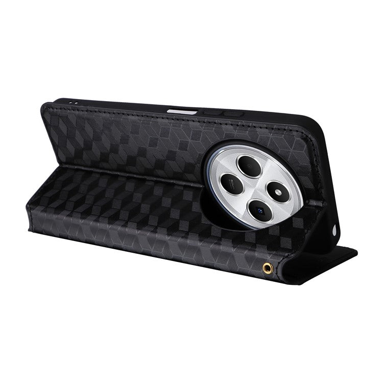 For Xiaomi Poco C75 4G / Redmi 14R 5G / 14C 4G / A4 5G Wallet Case Rhombus Imprinted Leather Phone Cover - Black