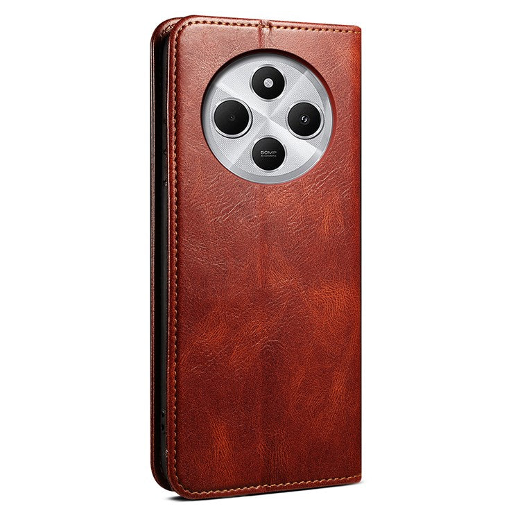 For Xiaomi Poco C75 4G / Redmi 14R 5G / 14C 4G Case Crazy Horse Texture Waxy Leather Wallet Stand Phone Cover - Brown